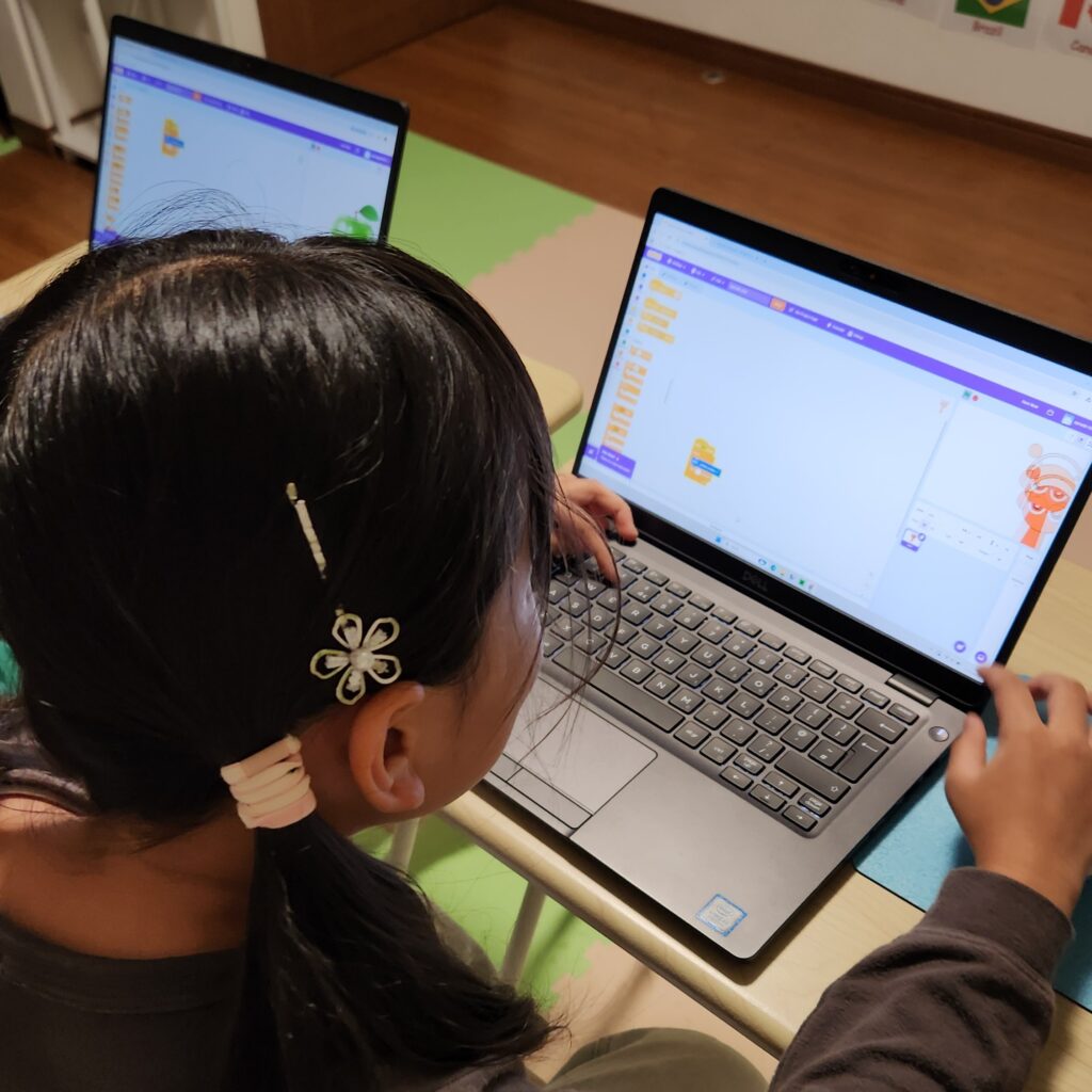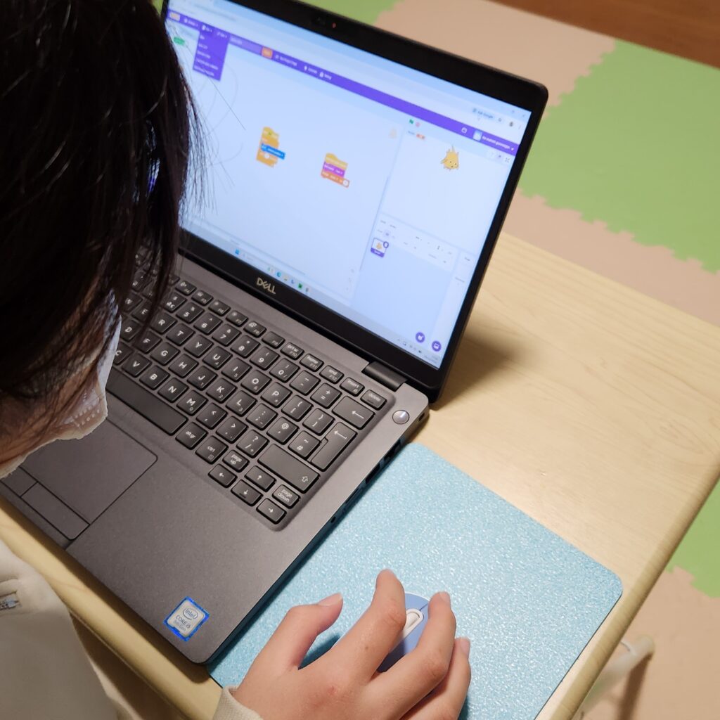 Scratchのブロックベースのビジュアルプログラミング環境を使用。楽しみながら、プログラミングの基礎と応用力を身につけます。